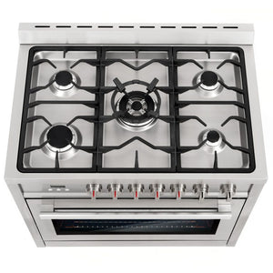 Cosmo 36 in. 3.8 cu. ft. Single Oven Gas Range with 5 Burner Cooktop and Heavy Duty Cast Iron Grates in Stainless Steel - COS-965AGFC