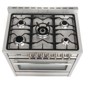 - Spacious 3.8 cu. ft. capacity with modern professional styling; freestanding single oven dual fuel range stove in premium brushed stainless steel allows you to cook full family dinners all at once; our gas range never limits you on valuable cooking space when time and efficiency matters