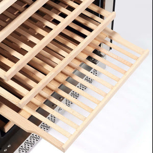 Our compressor wine fridge is equipped with 11 beech wooden shelves, expertly designed to deliver unmatched functionality with a premium style, each shelf slides out effortlessly for unencumbered access to your wines