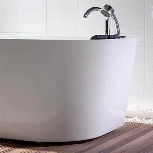The 59-inch freestanding whirlpool bathtub perfectly combines style and practicality. It's made of 100% glossy white acrylic and reinforced with fiberglass for long-lasting durability. The double-walled design brings maximum insulation and keeps water at its desired temperature longer. The hydro-massage system features 8 water jet infusion settings to target aches and sore areas. The wide edge rim accommodates a handheld shower. The ergonomic control knobs are designed for simplicity and ease and are equipped with an overflow assembly permitting the user to enjoy a deep soak without worrying about spillage. The Pop-up drain is designed to be easy to operate. Freestanding or back-to-wall installation for flexibility.